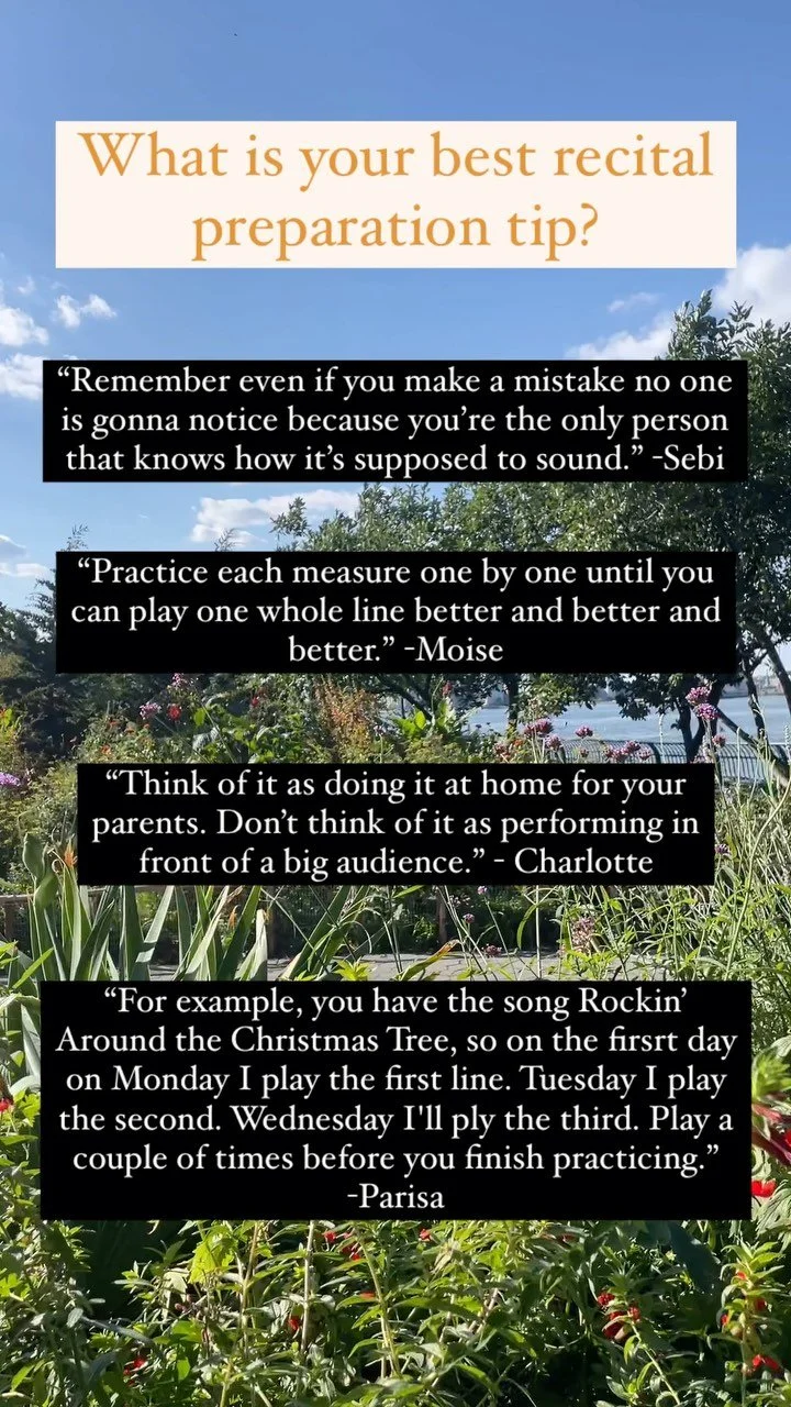 In addition to weekly lessons, students enjoy free, optional biannual recitals in beautiful concert halls and special experiences like Recording Studio Day, where they step into a professional NYC studio to record their own musicโa fun, confidence-building milestone in their musical journey.